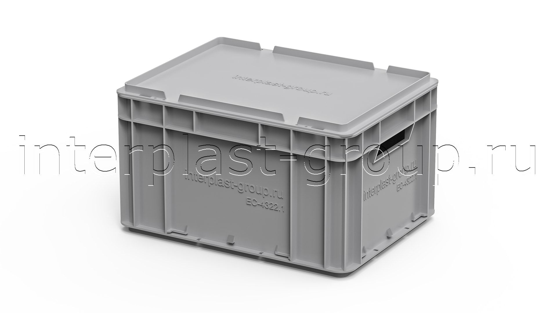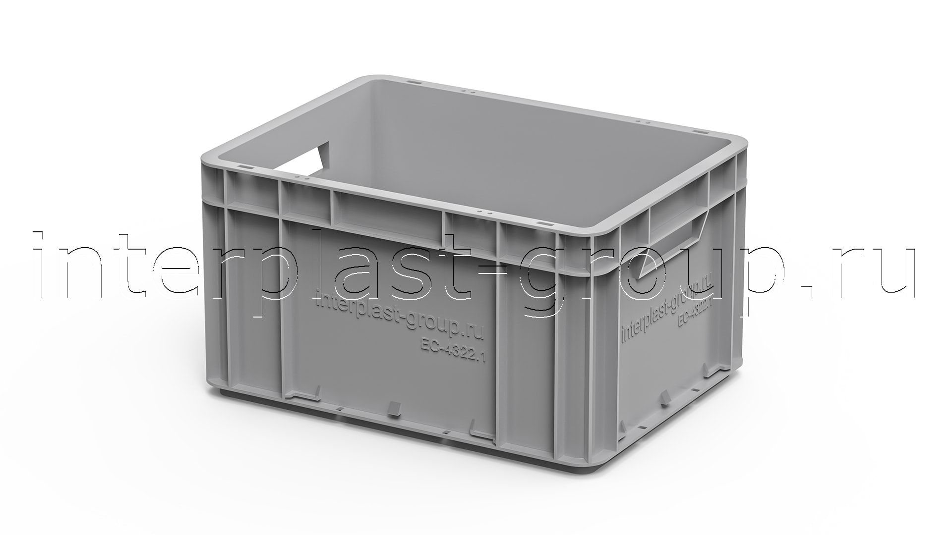 Евроконтейнер открытые ручки/сплошное дно (серый), 400x300x220 мм