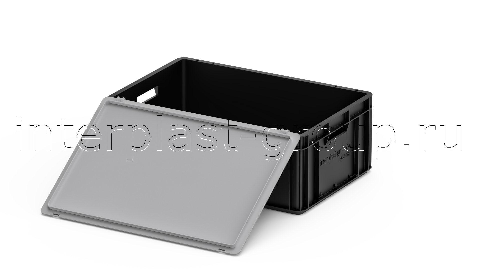 Евроконтейнер открытые ручки/сплошное дно (черный), 600x400x220 мм