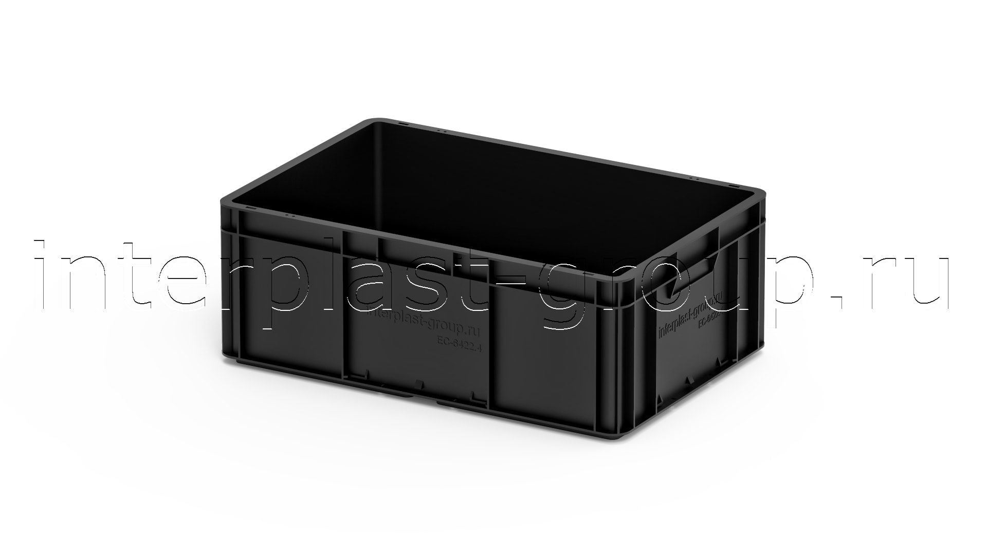 Евроконтейнер закрытые ручки/усиленное дно (черный), 600x400x220 мм
