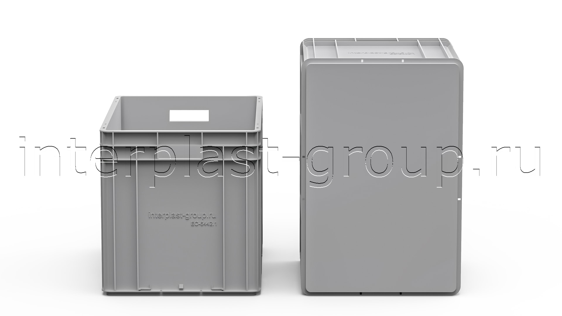 Евроконтейнер открытые ручки/сплошное дно (серый), 600x400x420 мм