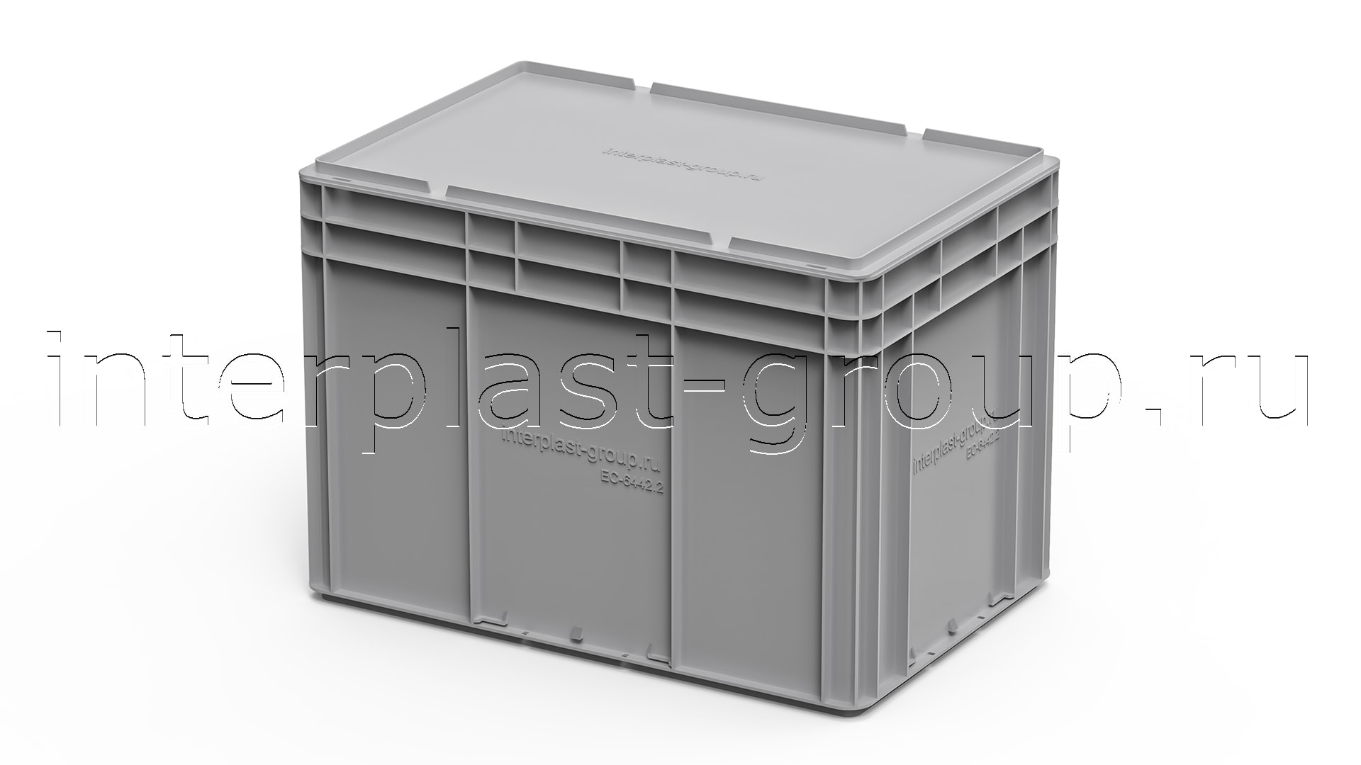 Евроконтейнер закрытые ручки/сплошное дно (серый), 600x400x420 мм