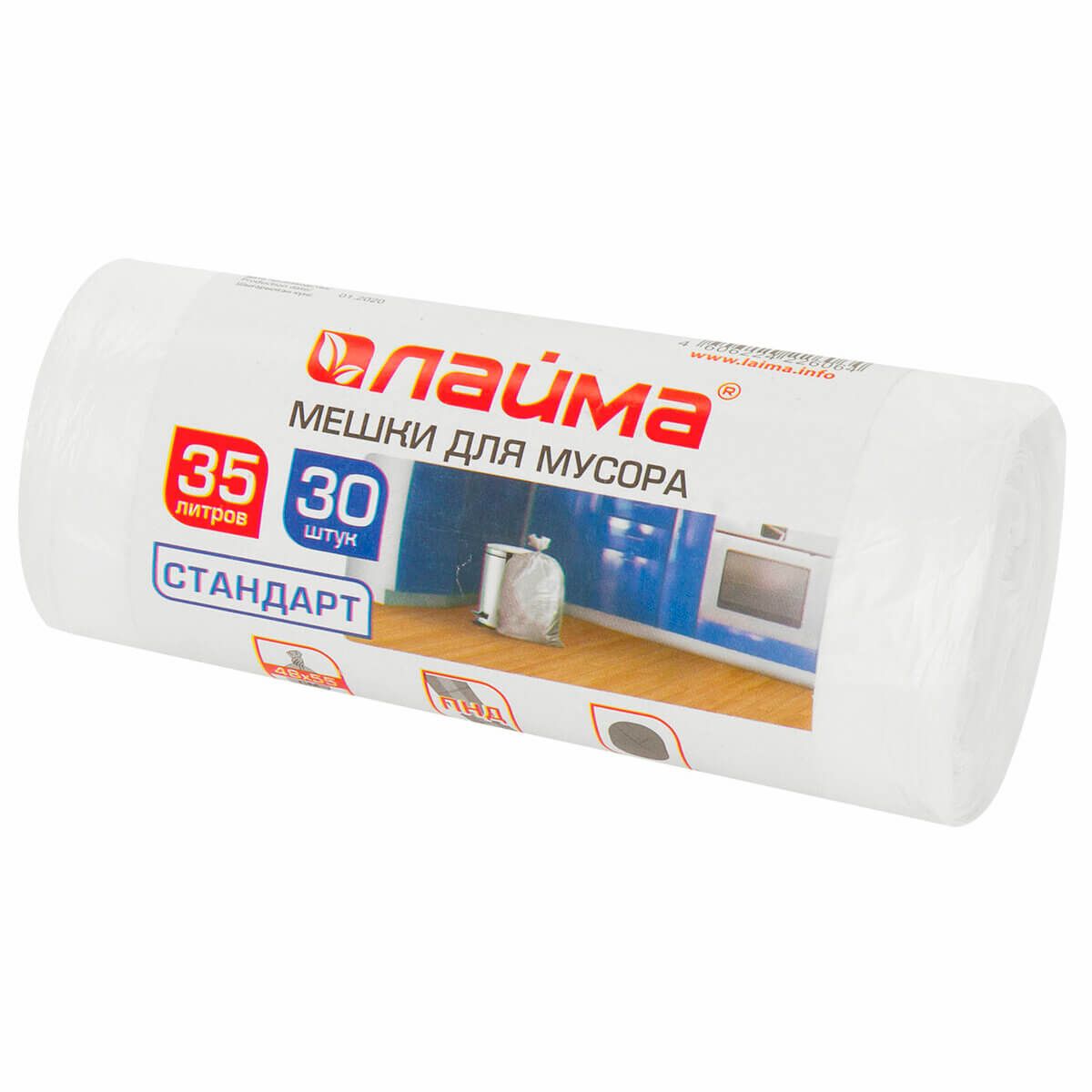 Мешки для мусора 35 л, белые, в рулоне 30 шт., ПНД, 6 мкм, 550х480 мм, LAIMA, 605538