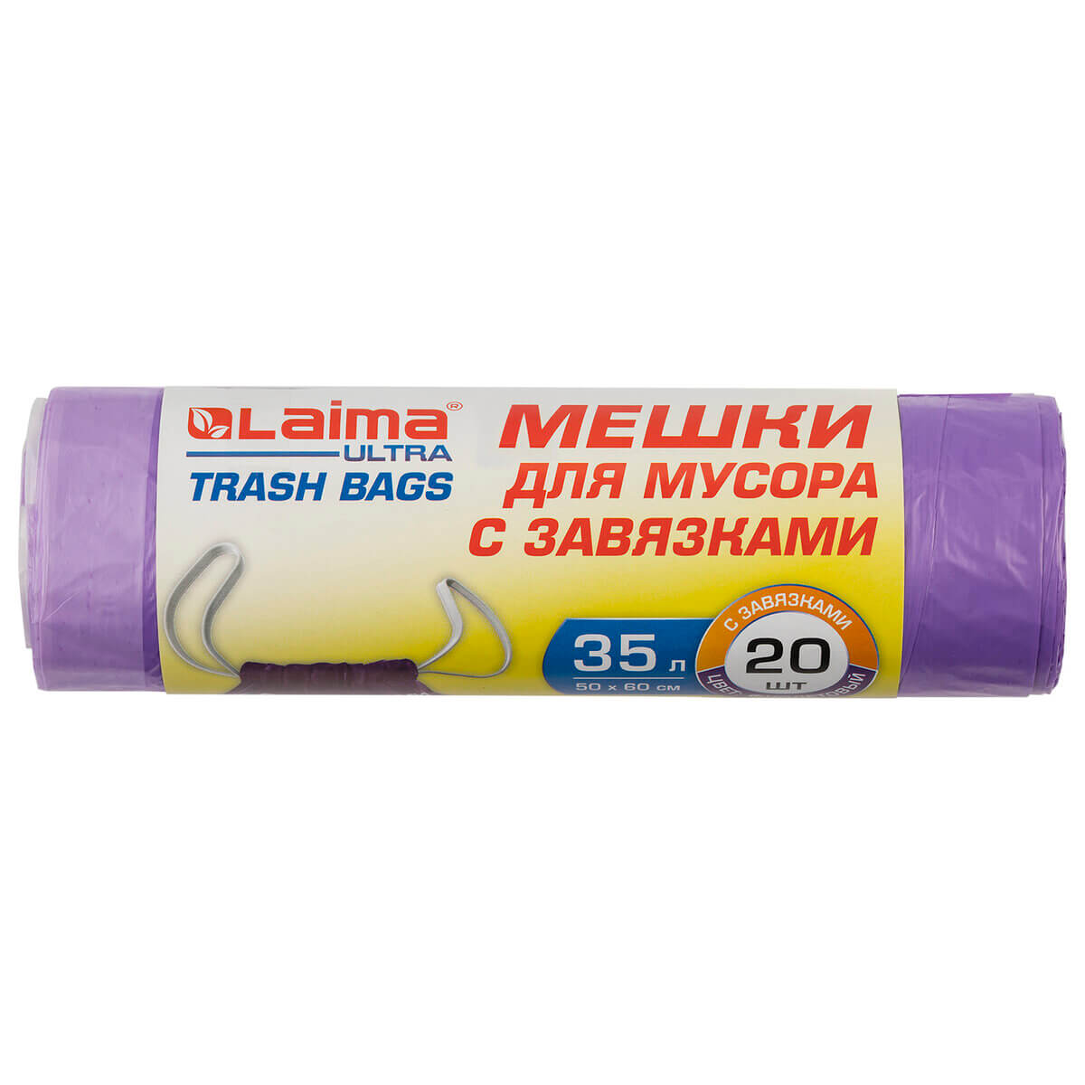 Мешки для мусора 35 л, с завязками, фиолетовые, в рулоне 20 шт., ПНД, 13 мкм, 600х500 мм, LAIMA ULTRA, 607685 в Бресте