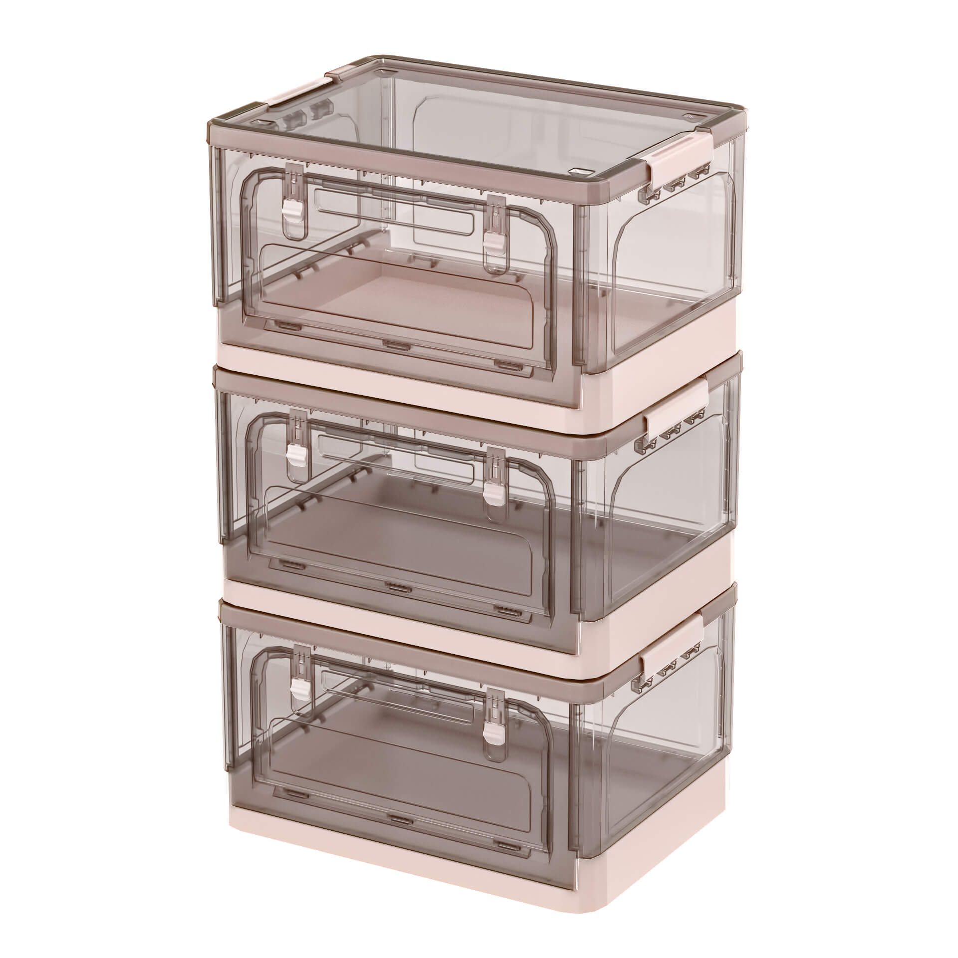 Функциональный пластиковый складной ящик сочетает в себе практичность, прочность и эстетичный дизайн. Прозрачные стенки с теплым коричневым оттенком позволяют легко видеть содержимое, а нежно-розовое дно придает изделию аккуратный и современный вид. Пластиковый контейнер идеально подходит для организации одежды, игрушек, бытовых принадлежностей, документов и других мелочей.