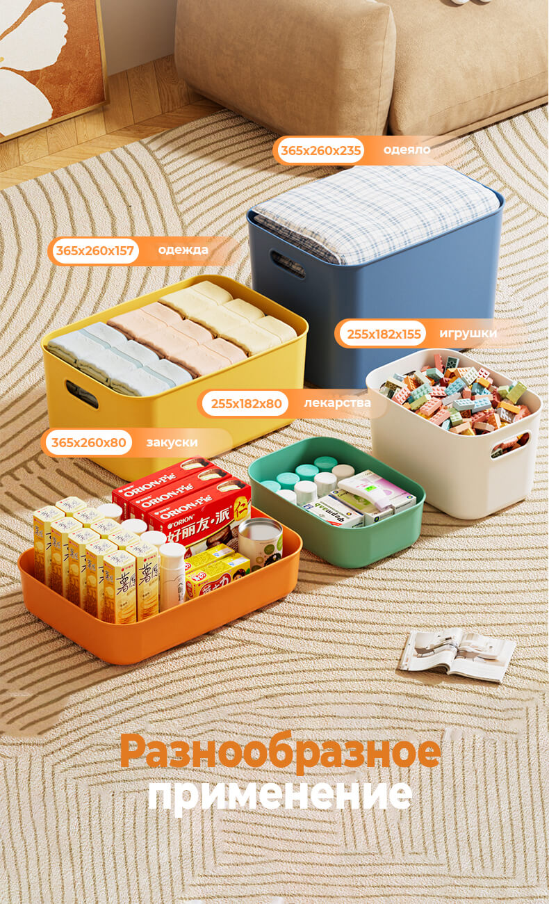 Подходит для хранения игрушек, одежды, документов и бытовых принадлежностей. Идеален для дома, офиса и склада.