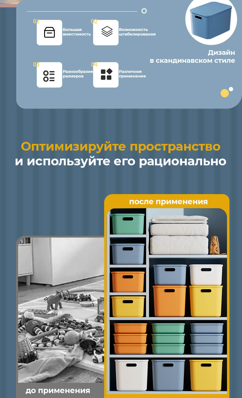 Используйте его для хранения игрушек, одежды, документов и мелочей. Подходит для дома, офиса и склада.