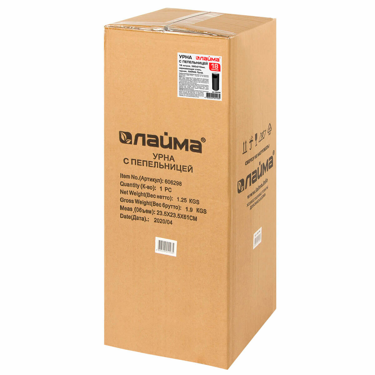 Урна с пепельницей 18 литров, нержавеющая сталь, черная, LAIMA PROFESSIONAL в Бресте